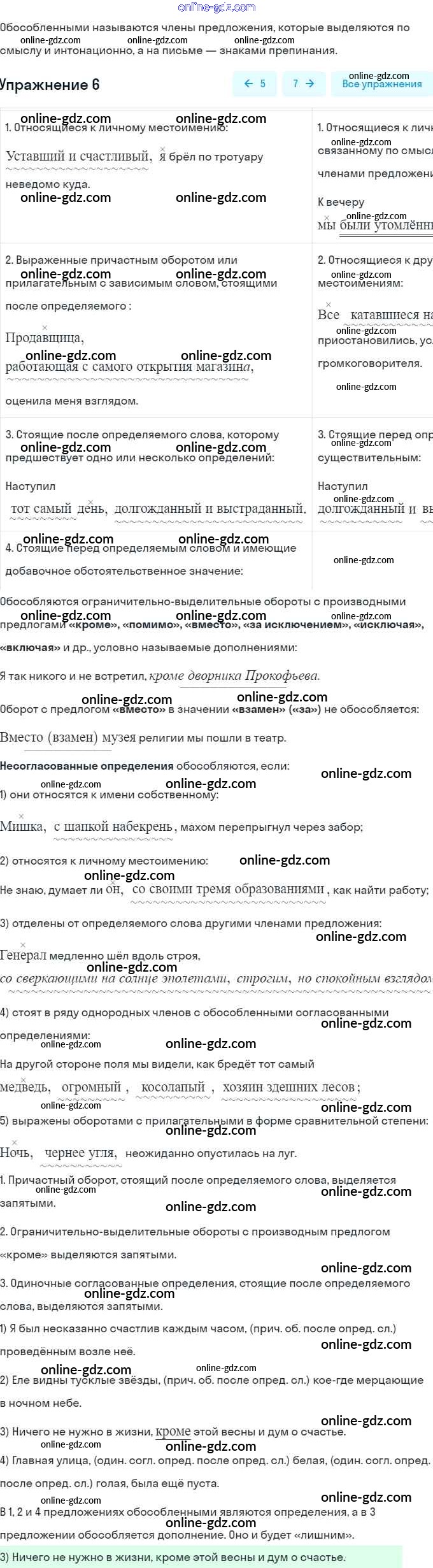 Готовые домашние задания по Русскому языку за 8 класс Тесты, творческие работы, проекты Нарушевич, Голубева 2020 - Вариант 1 Предложения с обособленными членами 6