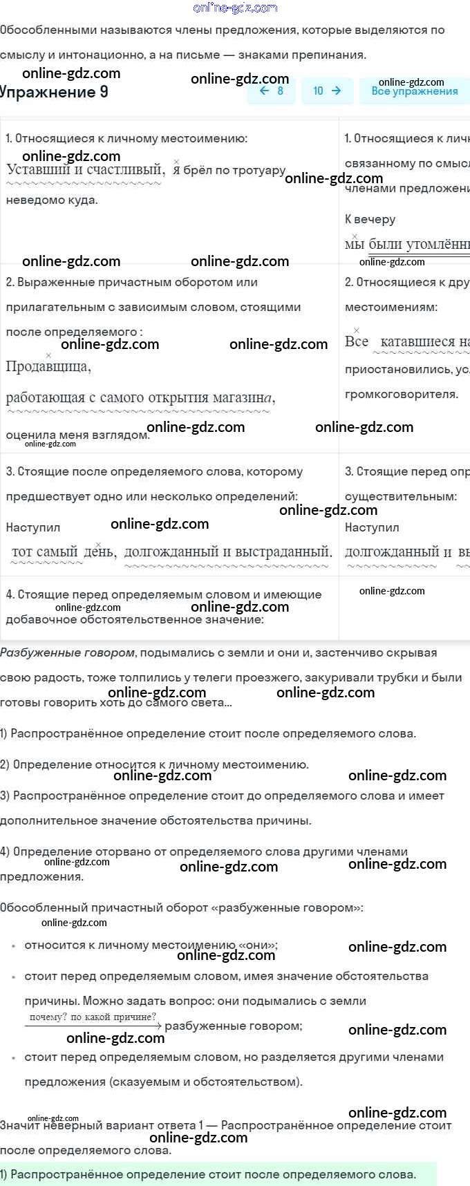 Готовые домашние задания по Русскому языку за 8 класс Тесты, творческие работы, проекты Нарушевич, Голубева 2020 - Вариант 1 Предложения с обособленными членами 9
