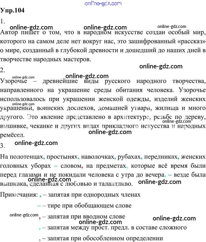 Готовые домашние задания по Русскому языку за 8 класс Учебник Александрова, Загоровская 2020 - Упражнения 104