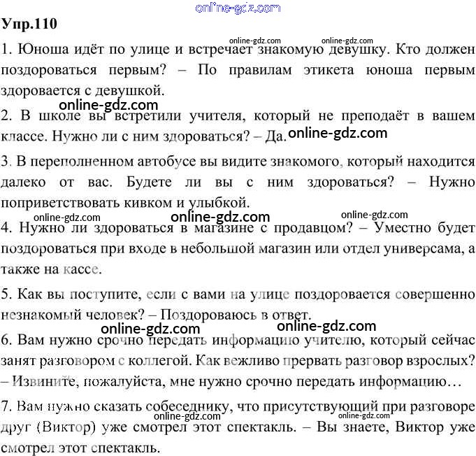 Готовые домашние задания по Русскому языку за 8 класс Учебник Александрова, Загоровская 2020 - Упражнения 110