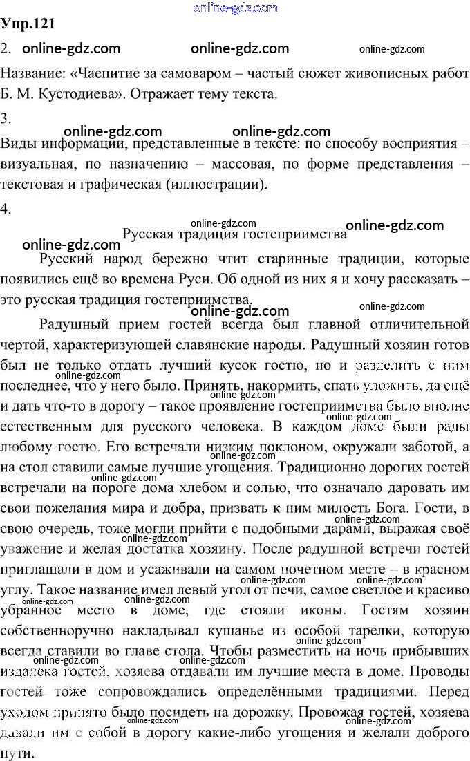 Готовые домашние задания по Русскому языку за 8 класс Учебник Александрова, Загоровская 2020 - Упражнения 121