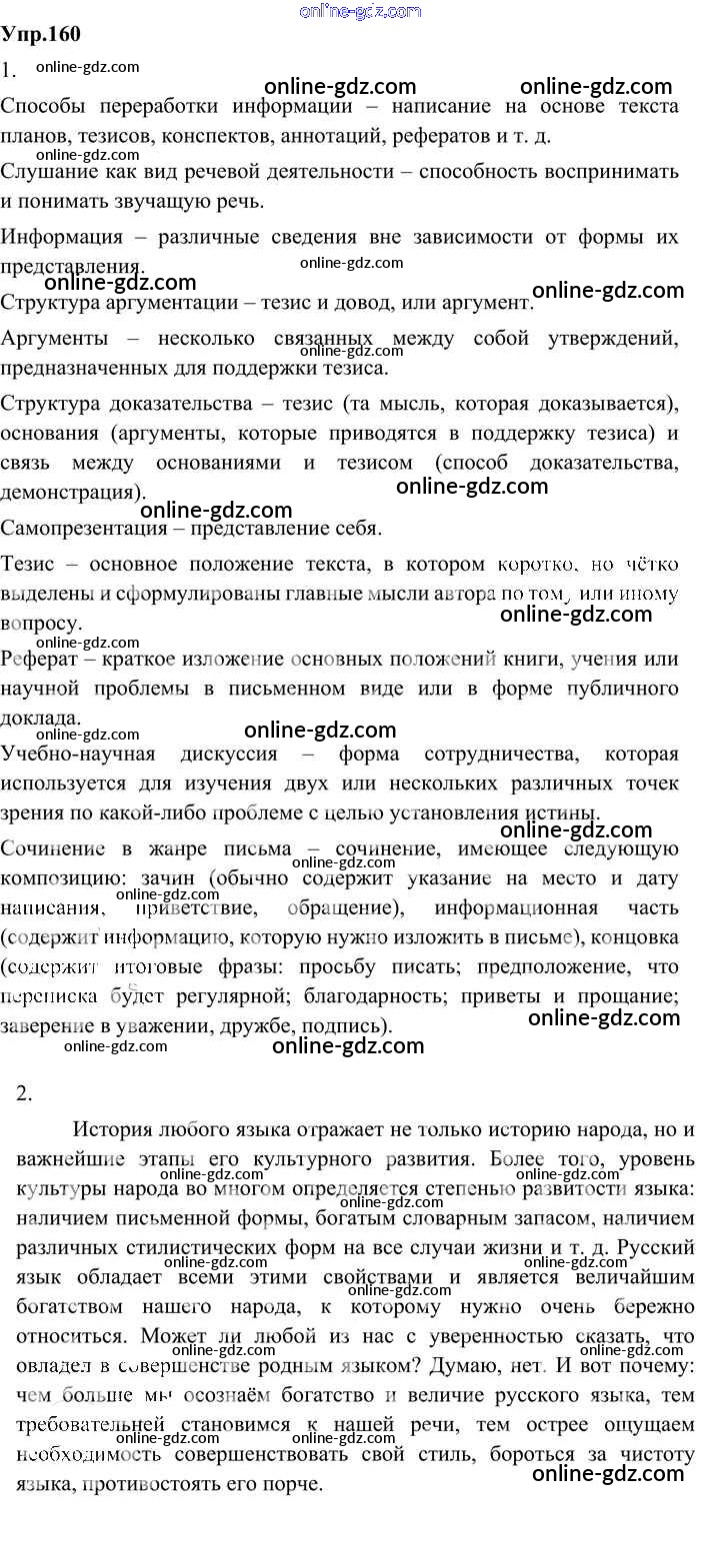 Готовые домашние задания по Русскому языку за 8 класс Учебник Александрова, Загоровская 2020 - Упражнения 160