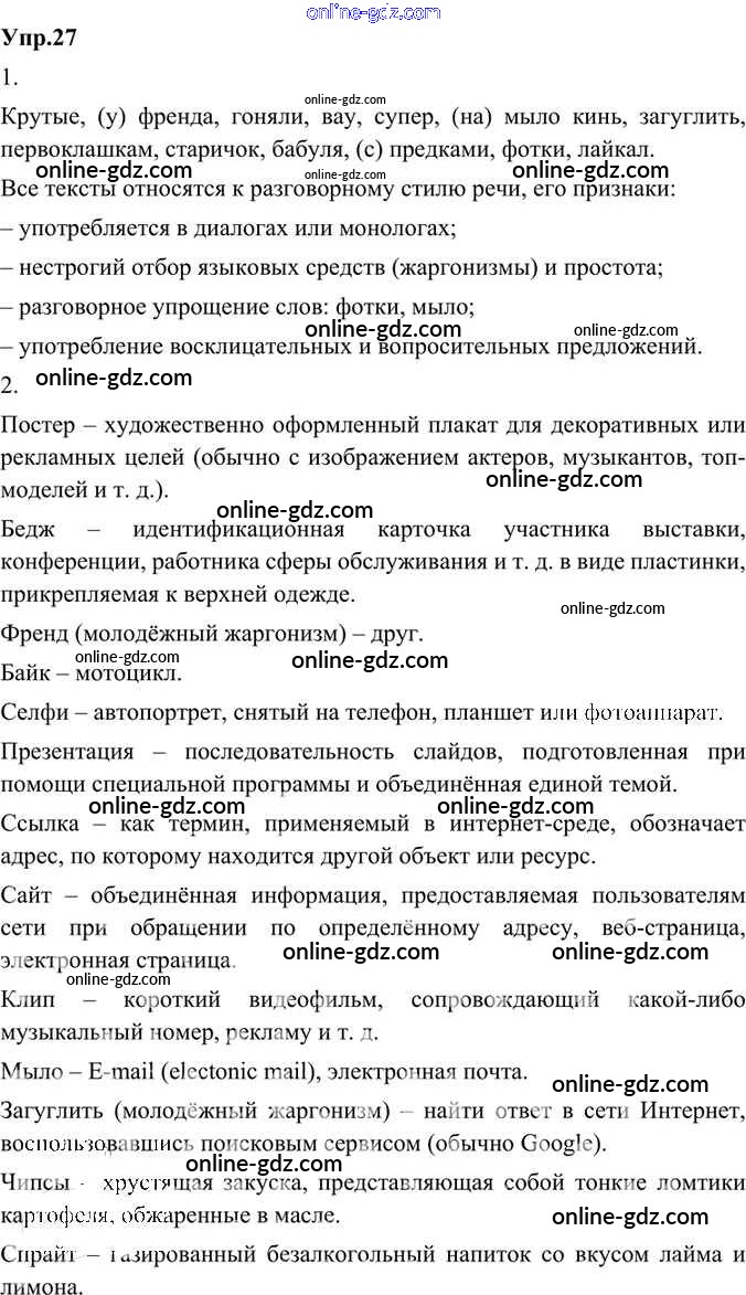 Готовые домашние задания по Русскому языку за 8 класс Учебник Александрова, Загоровская 2020 - Упражнения 27