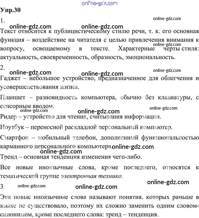 Готовые домашние задания по Русскому языку за 8 класс Учебник Александрова, Загоровская 2020 - Упражнения 30
