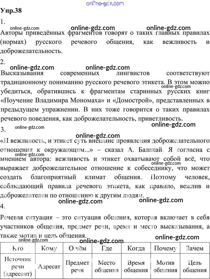 Готовые домашние задания по Русскому языку за 8 класс Учебник Александрова, Загоровская 2020 - Упражнения 38