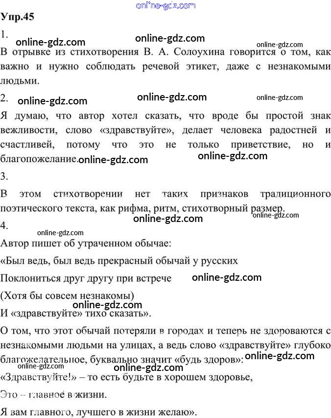 Готовые домашние задания по Русскому языку за 8 класс Учебник Александрова, Загоровская 2020 - Упражнения 45