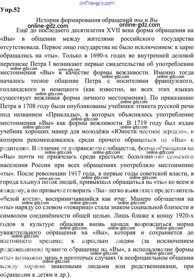 Готовые домашние задания по Русскому языку за 8 класс Учебник Александрова, Загоровская 2020 - Упражнения 52