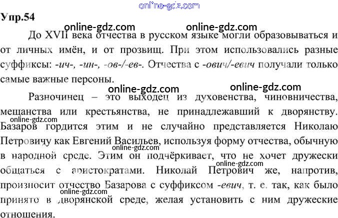 Готовые домашние задания по Русскому языку за 8 класс Учебник Александрова, Загоровская 2020 - Упражнения 54