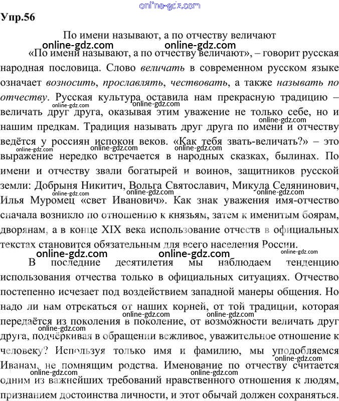 Готовые домашние задания по Русскому языку за 8 класс Учебник Александрова, Загоровская 2020 - Упражнения 56