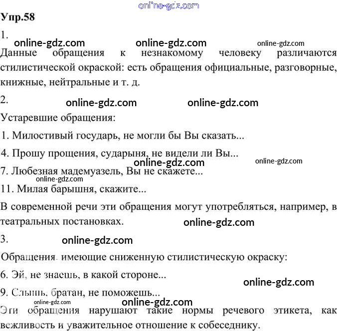 Готовые домашние задания по Русскому языку за 8 класс Учебник Александрова, Загоровская 2020 - Упражнения 58