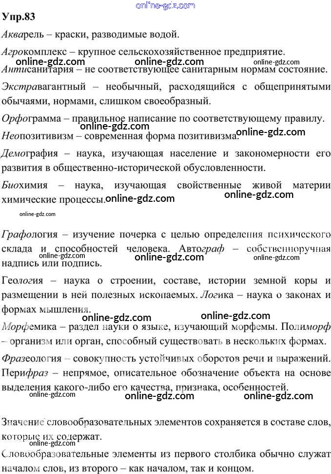 Готовые домашние задания по Русскому языку за 8 класс Учебник Александрова, Загоровская 2020 - Упражнения 83