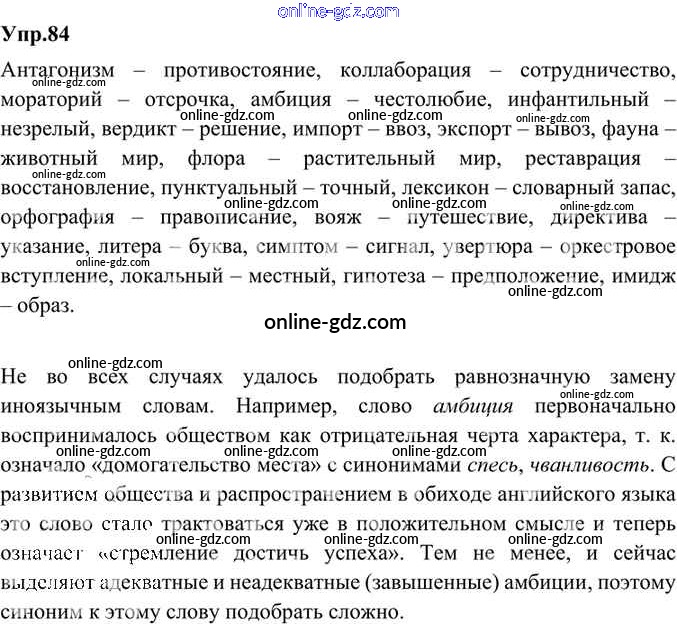 Готовые домашние задания по Русскому языку за 8 класс Учебник Александрова, Загоровская 2020 - Упражнения 84