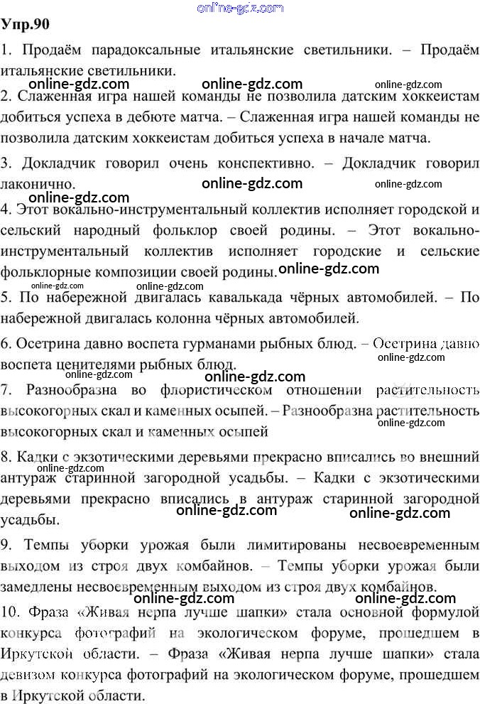 Готовые домашние задания по Русскому языку за 8 класс Учебник Александрова, Загоровская 2020 - Упражнения 90