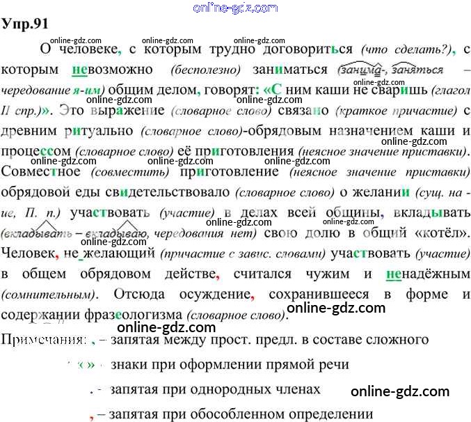 Готовые домашние задания по Русскому языку за 8 класс Учебник Александрова, Загоровская 2020 - Упражнения 91