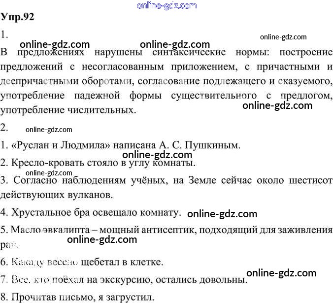 Готовые домашние задания по Русскому языку за 8 класс Учебник Александрова, Загоровская 2020 - Упражнения 92