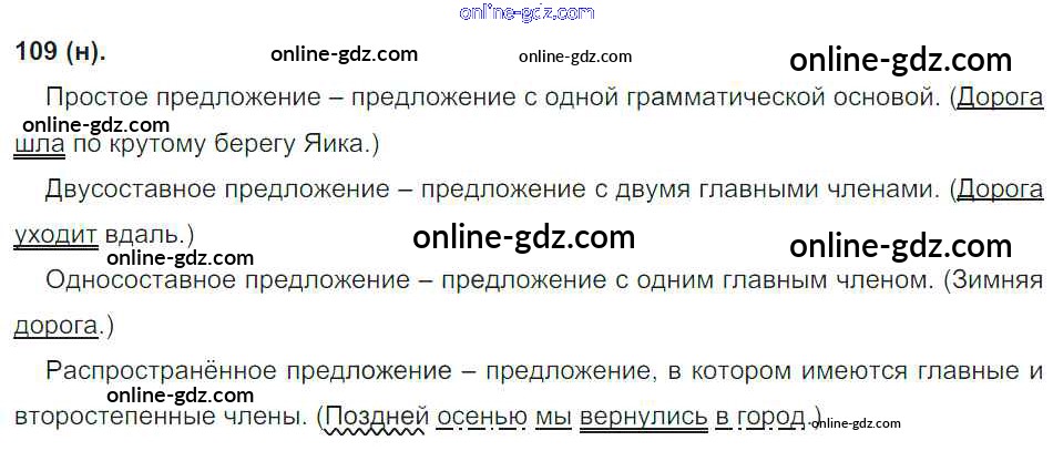 Готовые домашние задания по Русскому языку за 8 класс Учебник Бархударов, Крючков 2018 - Упражнения 109