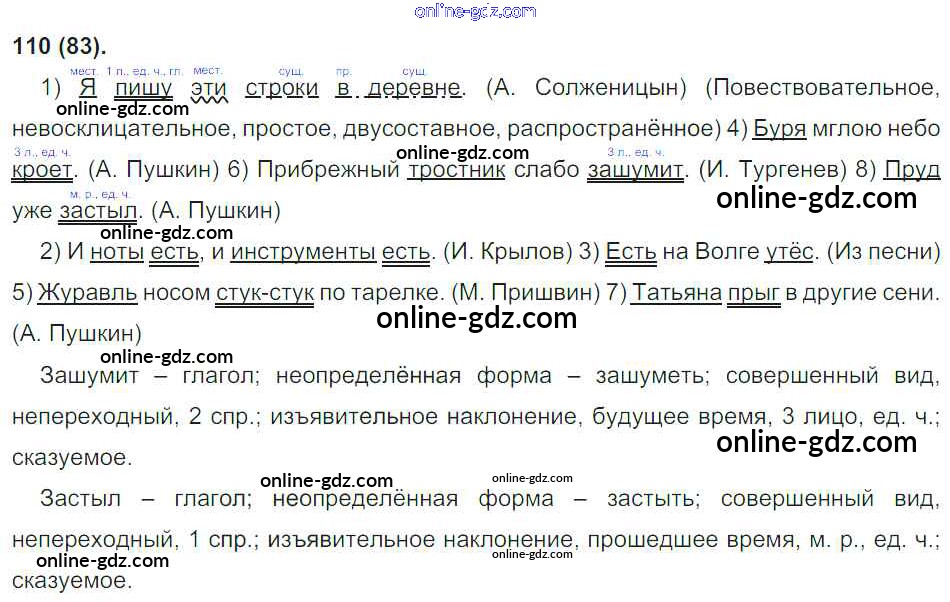 Готовые домашние задания по Русскому языку за 8 класс Учебник Бархударов, Крючков 2018 - Упражнения 110