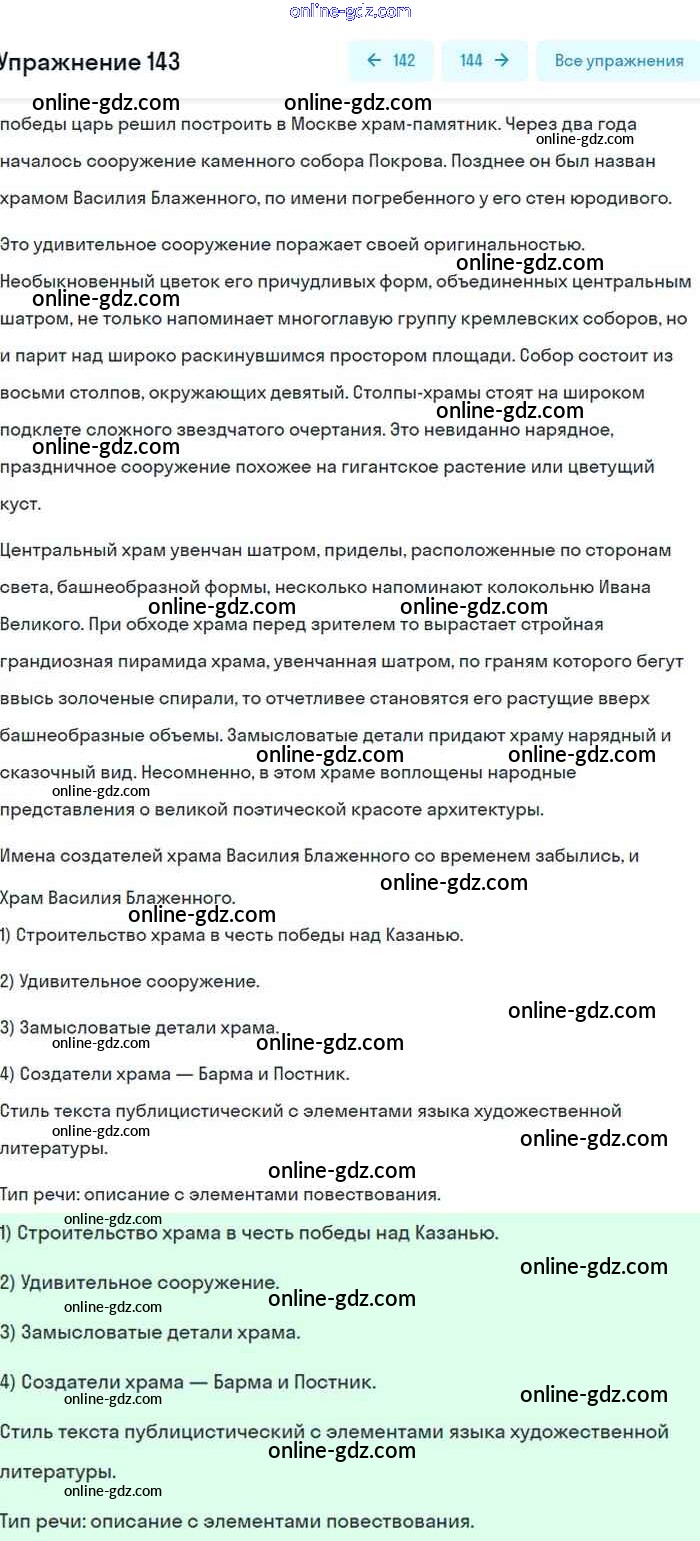 Готовые домашние задания по Русскому языку за 8 класс Учебник Бархударов, Крючков 2018 - Упражнения 143