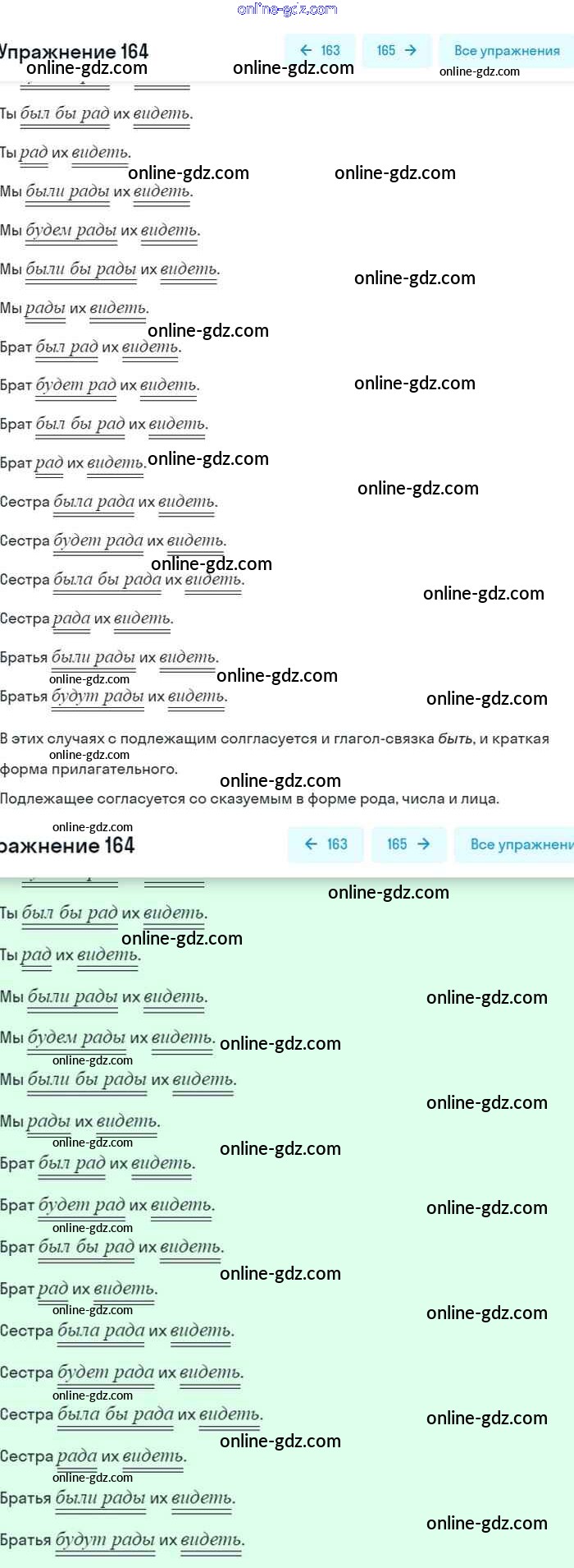 Готовые домашние задания по Русскому языку за 8 класс Учебник Бархударов, Крючков 2018 - Упражнения 164