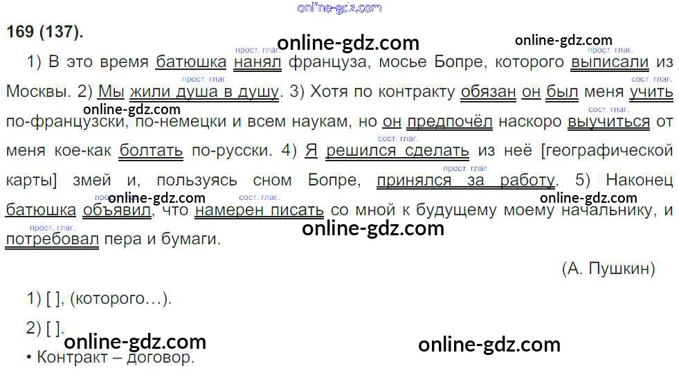Готовые домашние задания по Русскому языку за 8 класс Учебник Бархударов, Крючков 2018 - Упражнения 169