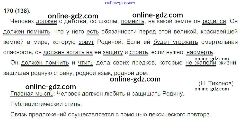 Готовые домашние задания по Русскому языку за 8 класс Учебник Бархударов, Крючков 2018 - Упражнения 170