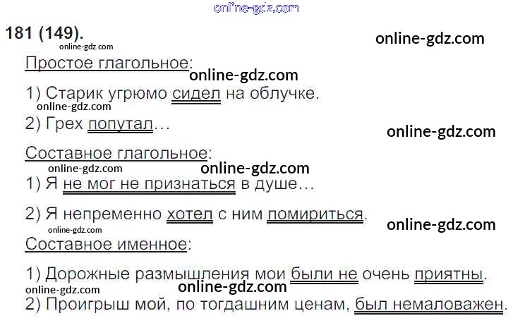 Готовые домашние задания по Русскому языку за 8 класс Учебник Бархударов, Крючков 2018 - Упражнения 181