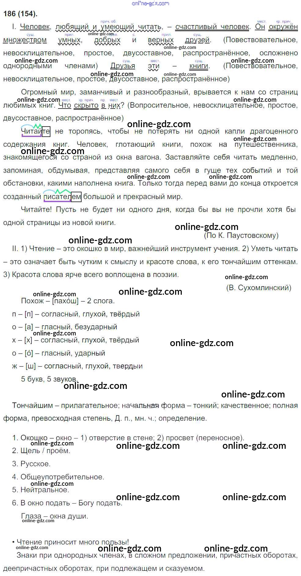 Готовые домашние задания по Русскому языку за 8 класс Учебник Бархударов, Крючков 2018 - Упражнения 186
