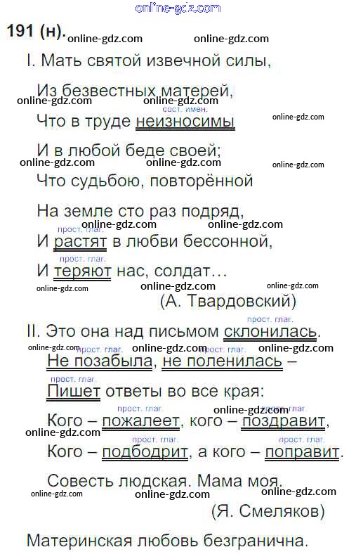 Готовые домашние задания по Русскому языку за 8 класс Учебник Бархударов, Крючков 2018 - Упражнения 191