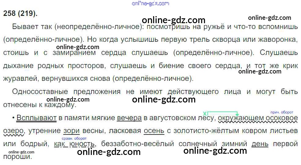 Готовые домашние задания по Русскому языку за 8 класс Учебник Бархударов, Крючков 2018 - Упражнения 258