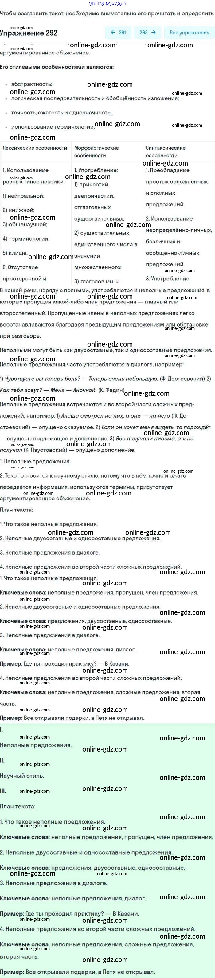Готовые домашние задания по Русскому языку за 8 класс Учебник Бархударов, Крючков 2018 - Упражнения 292