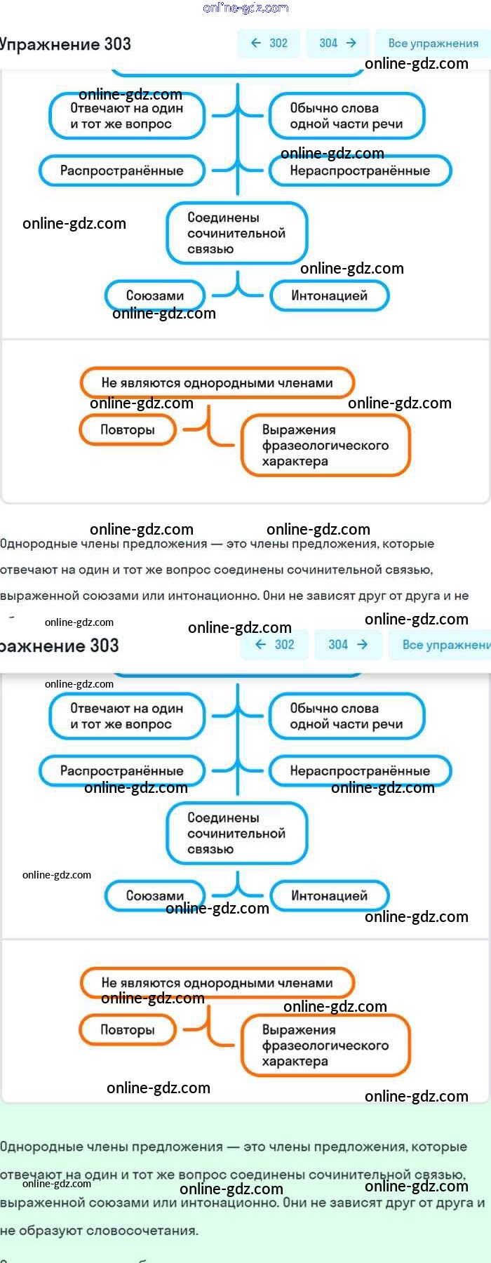 Готовые домашние задания по Русскому языку за 8 класс Учебник Бархударов, Крючков 2018 - Упражнения 303