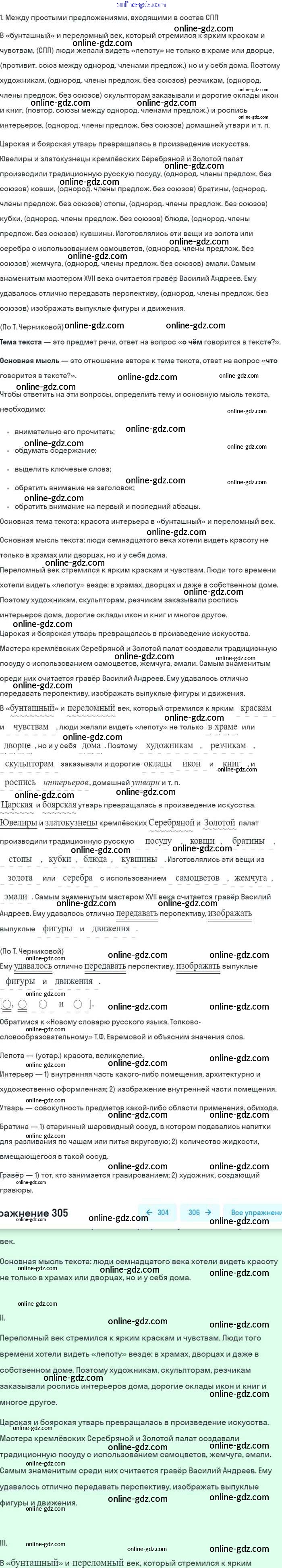 Готовые домашние задания по Русскому языку за 8 класс Учебник Бархударов, Крючков 2018 - Упражнения 305