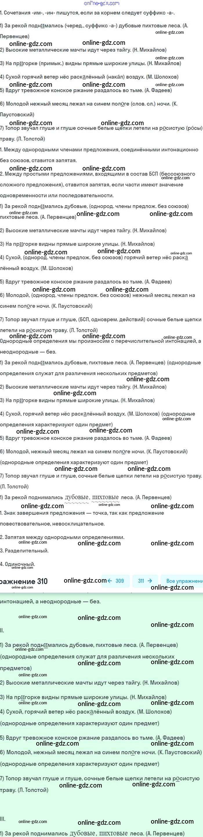 Готовые домашние задания по Русскому языку за 8 класс Учебник Бархударов, Крючков 2018 - Упражнения 310