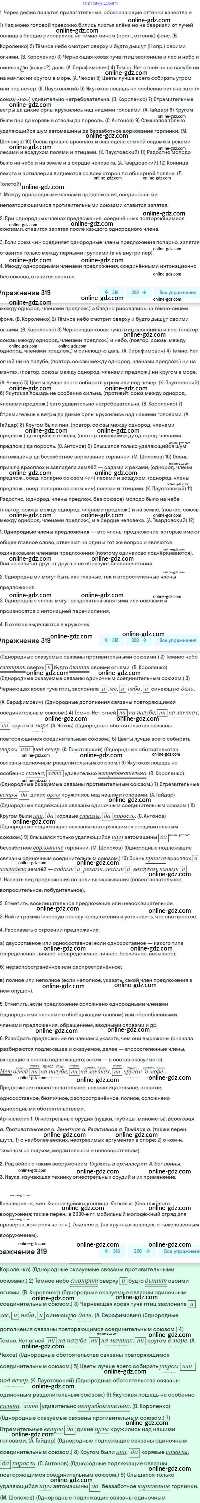 Готовые домашние задания по Русскому языку за 8 класс Учебник Бархударов, Крючков 2018 - Упражнения 319