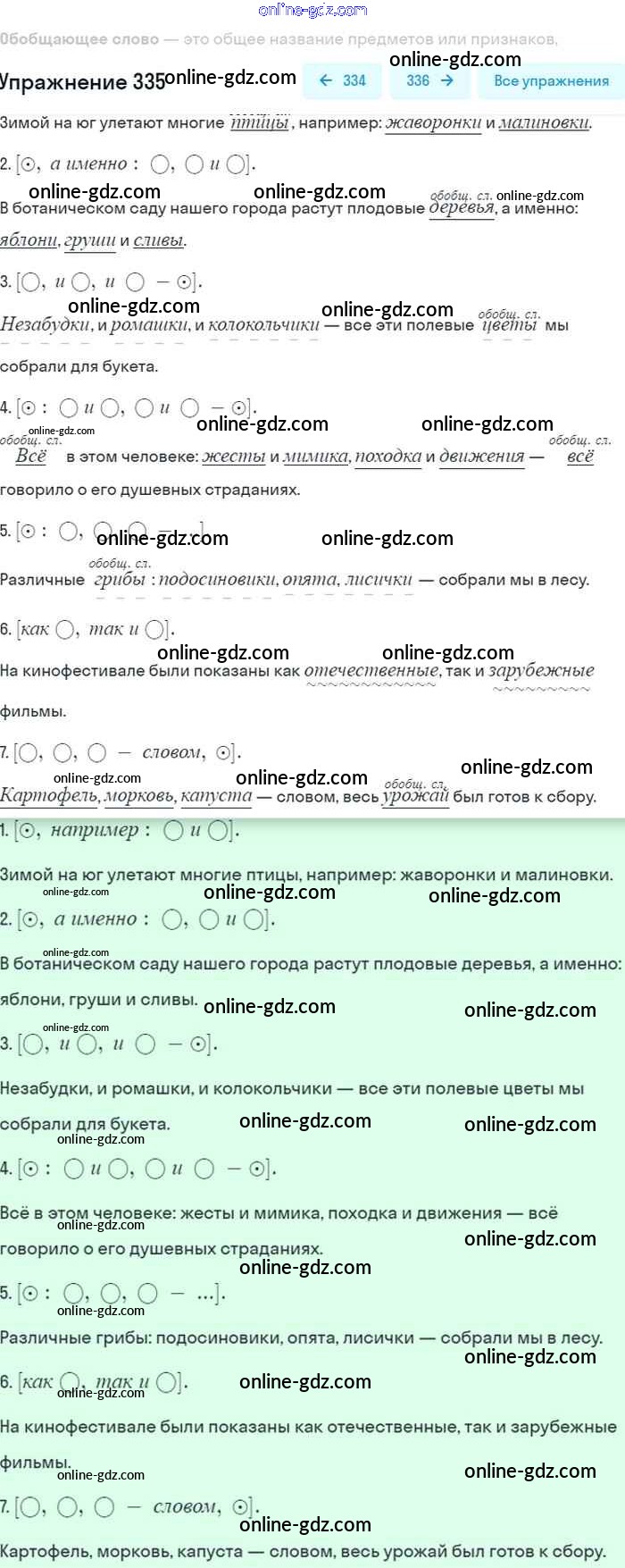 Готовые домашние задания по Русскому языку за 8 класс Учебник Бархударов, Крючков 2018 - Упражнения 335