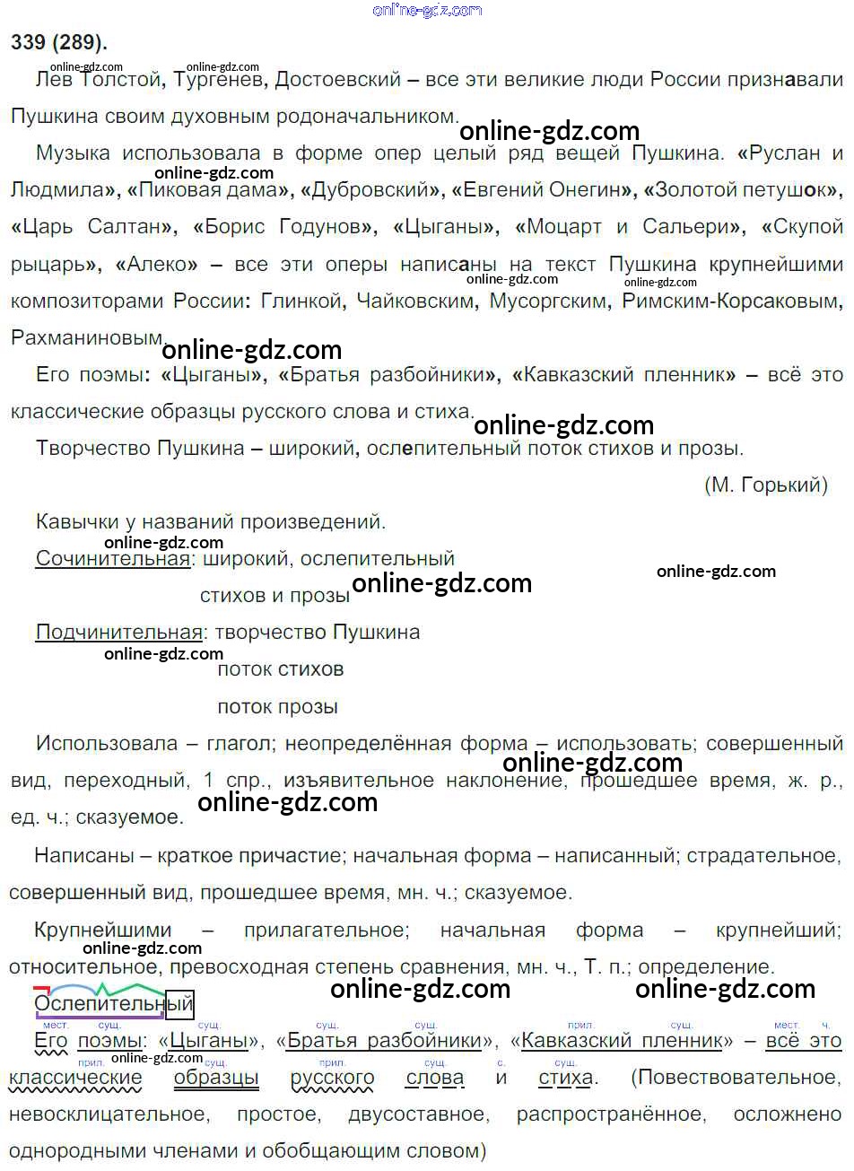 Готовые домашние задания по Русскому языку за 8 класс Учебник Бархударов, Крючков 2018 - Упражнения 339