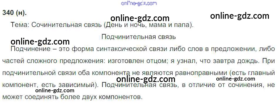 Готовые домашние задания по Русскому языку за 8 класс Учебник Бархударов, Крючков 2018 - Упражнения 340