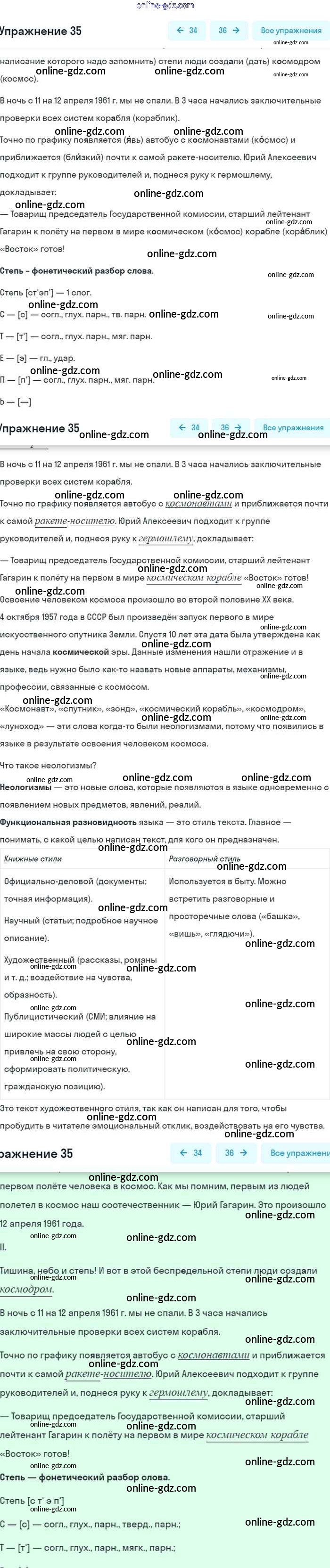 Готовые домашние задания по Русскому языку за 8 класс Учебник Бархударов, Крючков 2018 - Упражнения 35