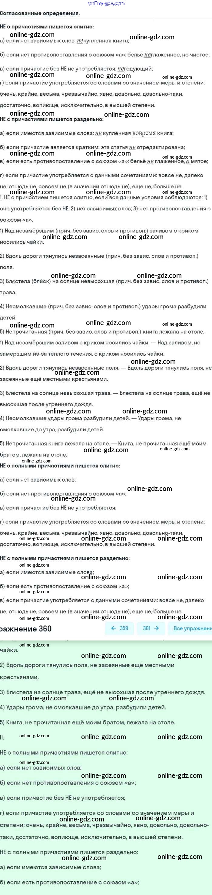 Готовые домашние задания по Русскому языку за 8 класс Учебник Бархударов, Крючков 2018 - Упражнения 360