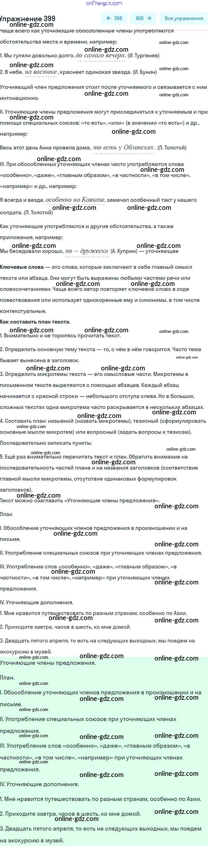 Готовые домашние задания по Русскому языку за 8 класс Учебник Бархударов, Крючков 2018 - Упражнения 399