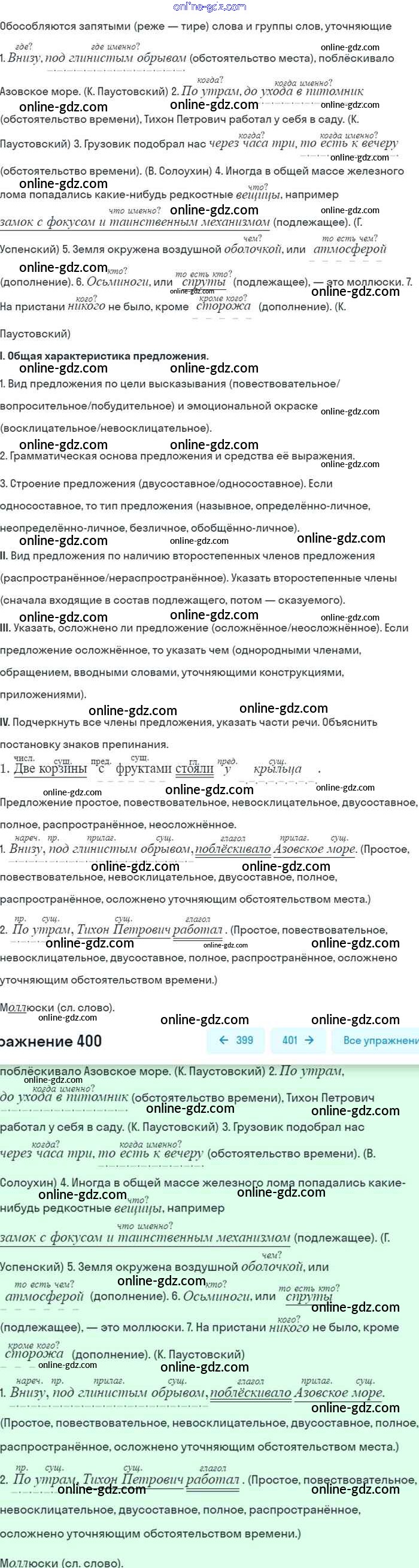 Готовые домашние задания по Русскому языку за 8 класс Учебник Бархударов, Крючков 2018 - Упражнения 400