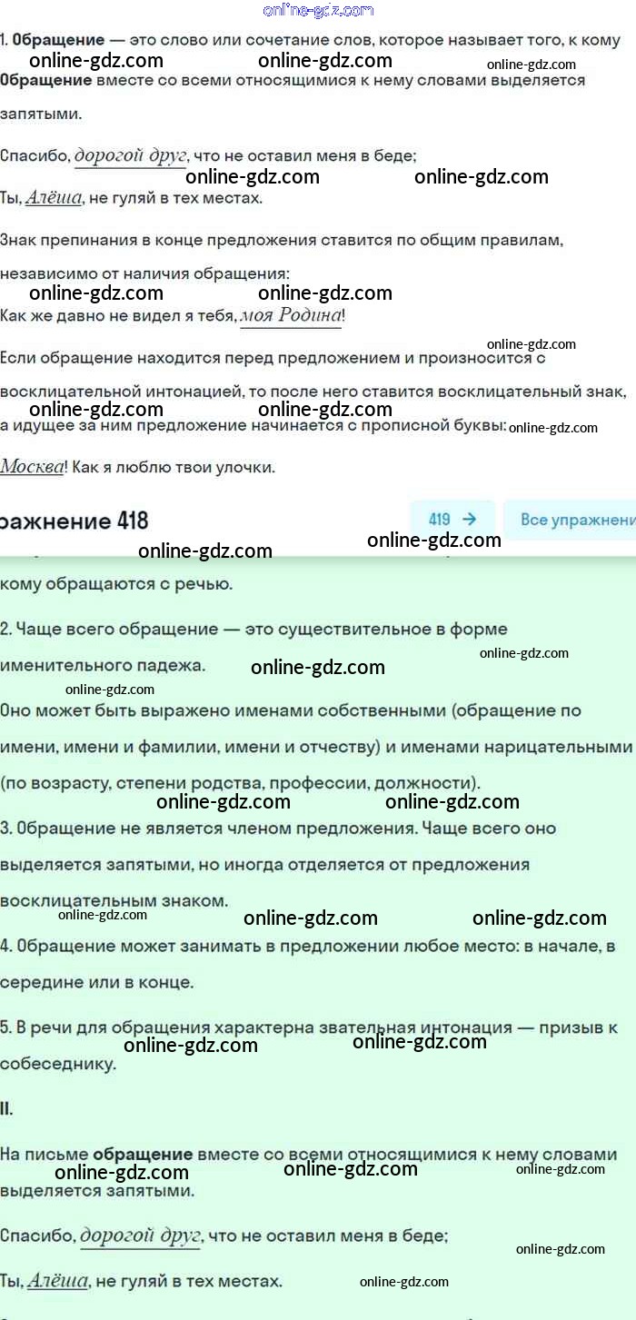 Готовые домашние задания по Русскому языку за 8 класс Учебник Бархударов, Крючков 2018 - Упражнения 418