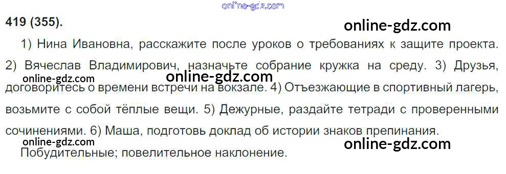 Готовые домашние задания по Русскому языку за 8 класс Учебник Бархударов, Крючков 2018 - Упражнения 419