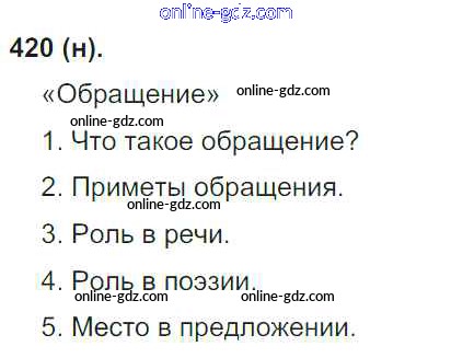 Готовые домашние задания по Русскому языку за 8 класс Учебник Бархударов, Крючков 2018 - Упражнения 420