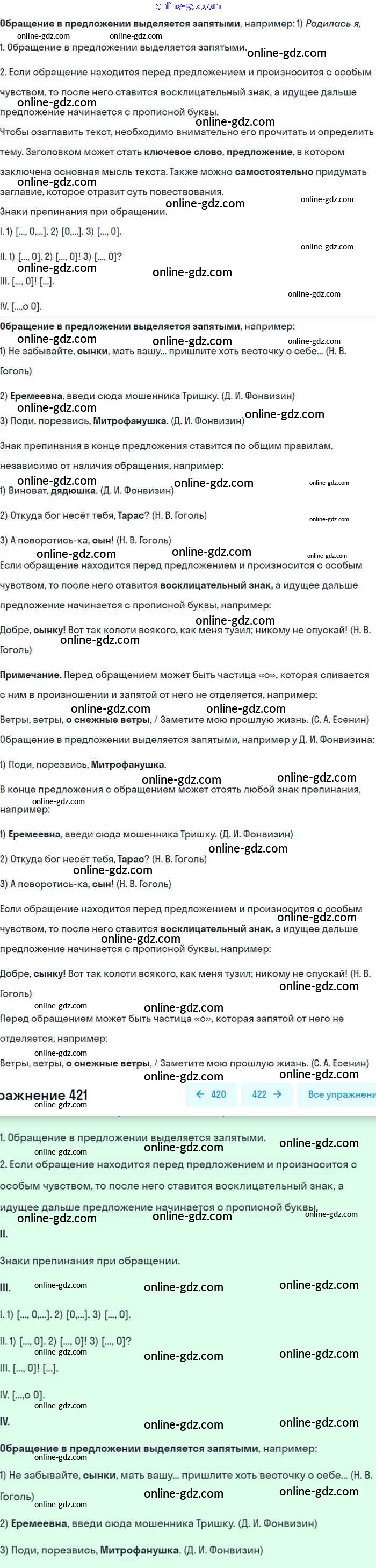Готовые домашние задания по Русскому языку за 8 класс Учебник Бархударов, Крючков 2018 - Упражнения 421