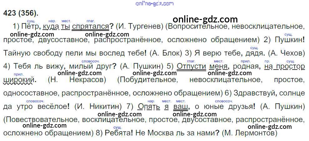Готовые домашние задания по Русскому языку за 8 класс Учебник Бархударов, Крючков 2018 - Упражнения 423