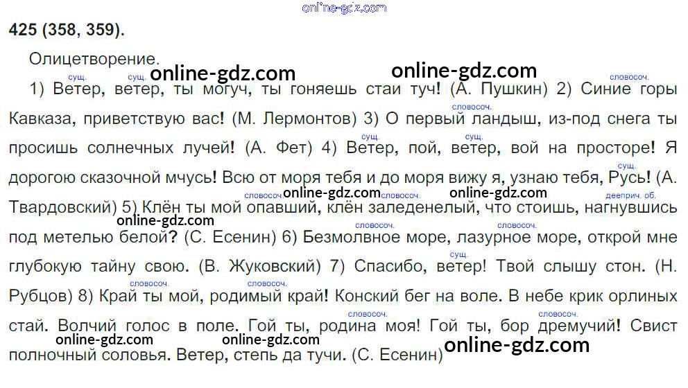 Готовые домашние задания по Русскому языку за 8 класс Учебник Бархударов, Крючков 2018 - Упражнения 425