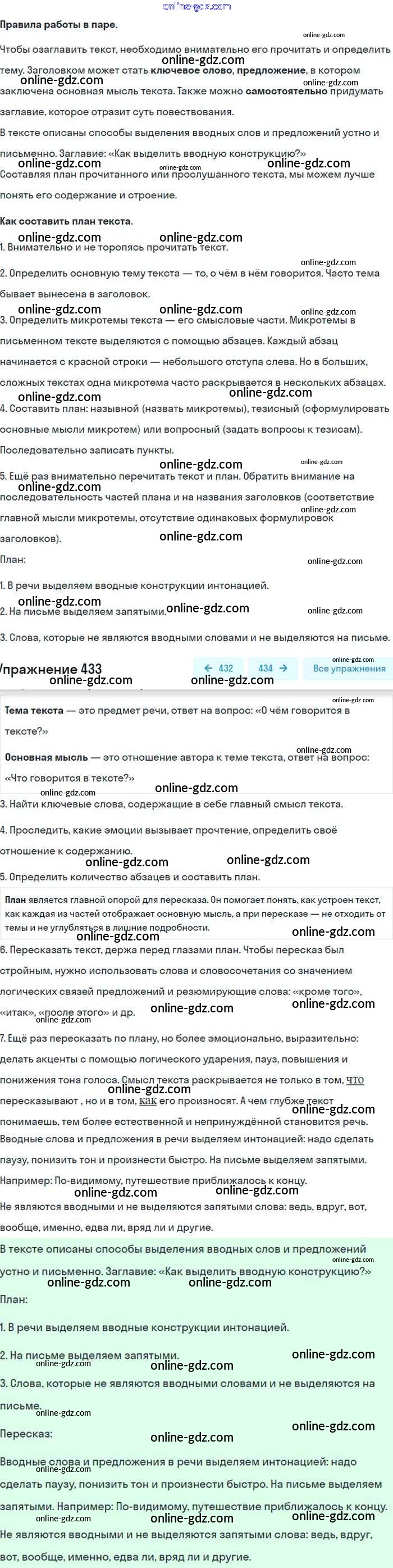 Готовые домашние задания по Русскому языку за 8 класс Учебник Бархударов, Крючков 2018 - Упражнения 433