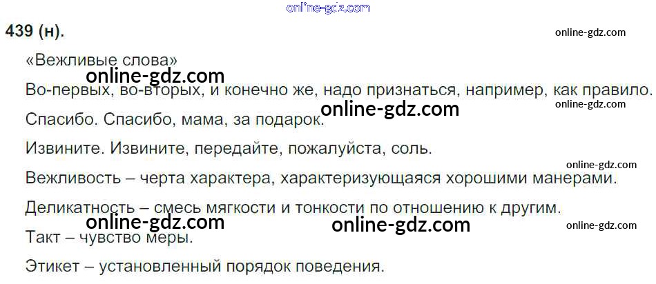 Готовые домашние задания по Русскому языку за 8 класс Учебник Бархударов, Крючков 2018 - Упражнения 439