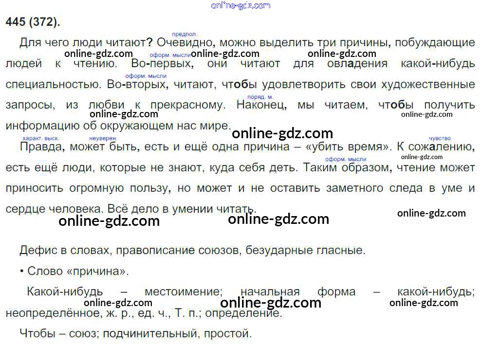 Готовые домашние задания по Русскому языку за 8 класс Учебник Бархударов, Крючков 2018 - Упражнения 445